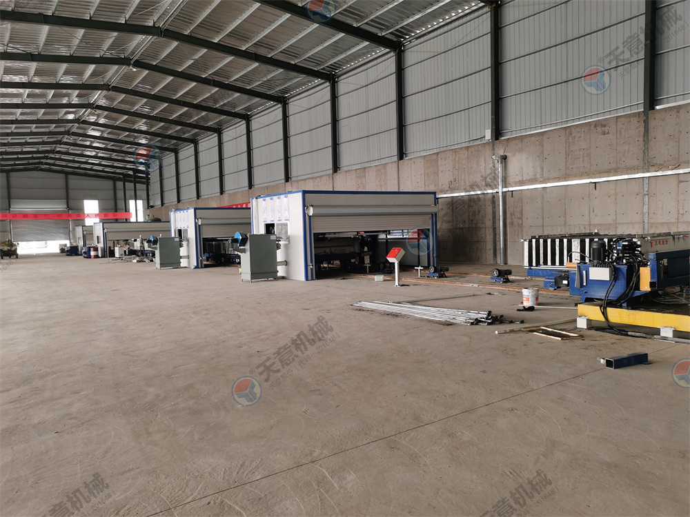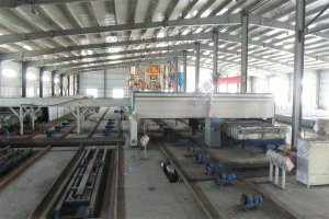10.墻板機(jī)雙向開(kāi)合,采用卯榫工藝焊接,確保大板焊接厚度以至,大板經(jīng)四面刨銑,能保證生產(chǎn)線上的模車一至,以便于后期整體上成型,自動(dòng)抽芯機(jī),自動(dòng)涂油機(jī)的安裝。